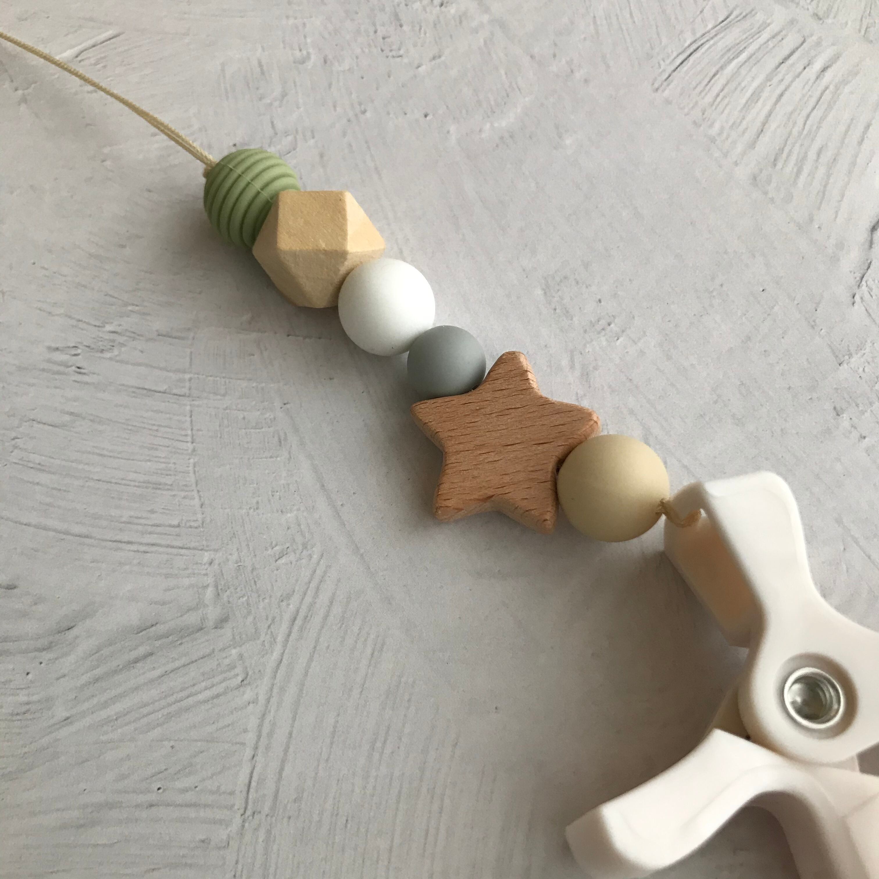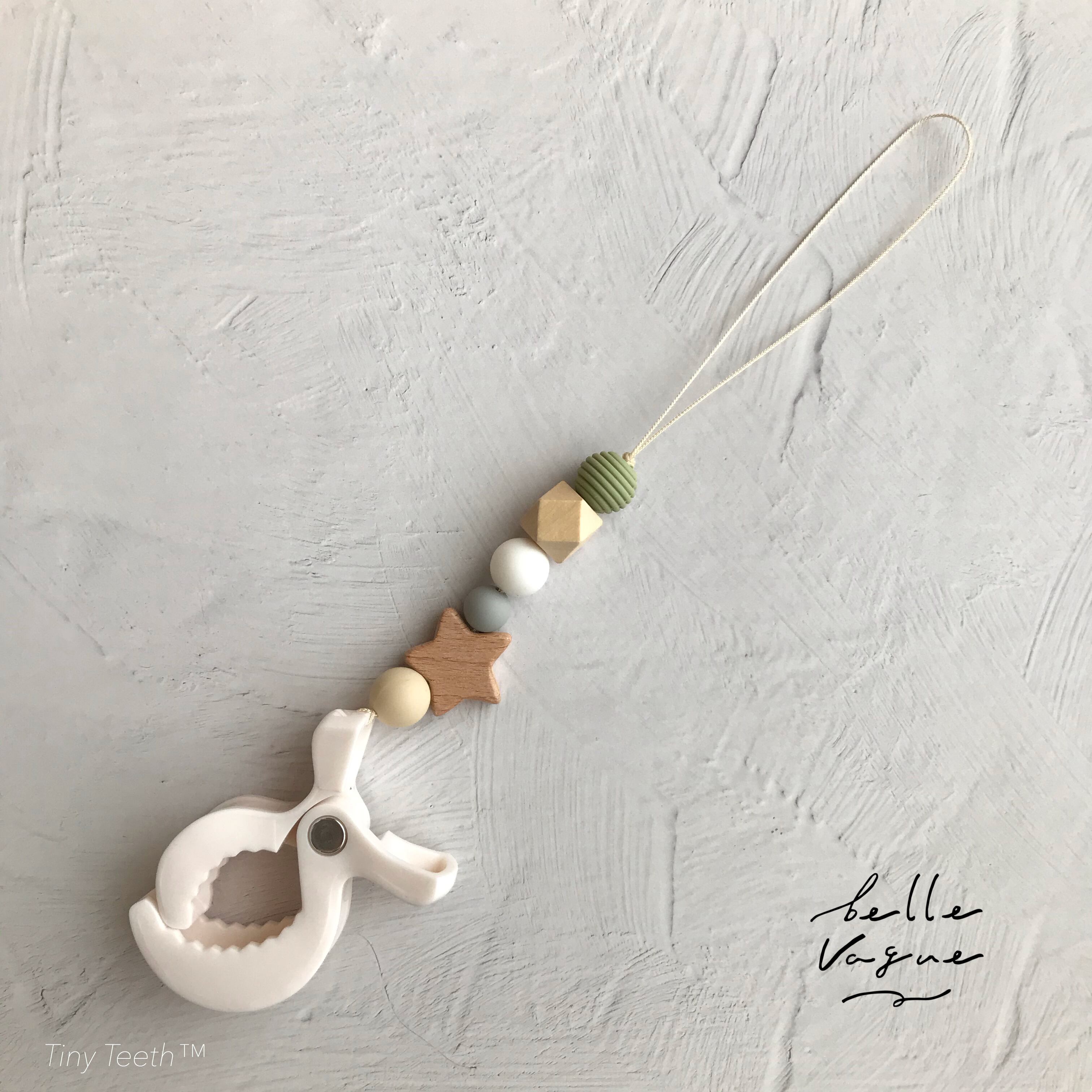 赤ちゃんが舐めても安全なBPAフリーFDA認可のシリコンビーズや天然木、万が一赤ちゃんの口に入っても大丈夫な接着剤を使用しております。