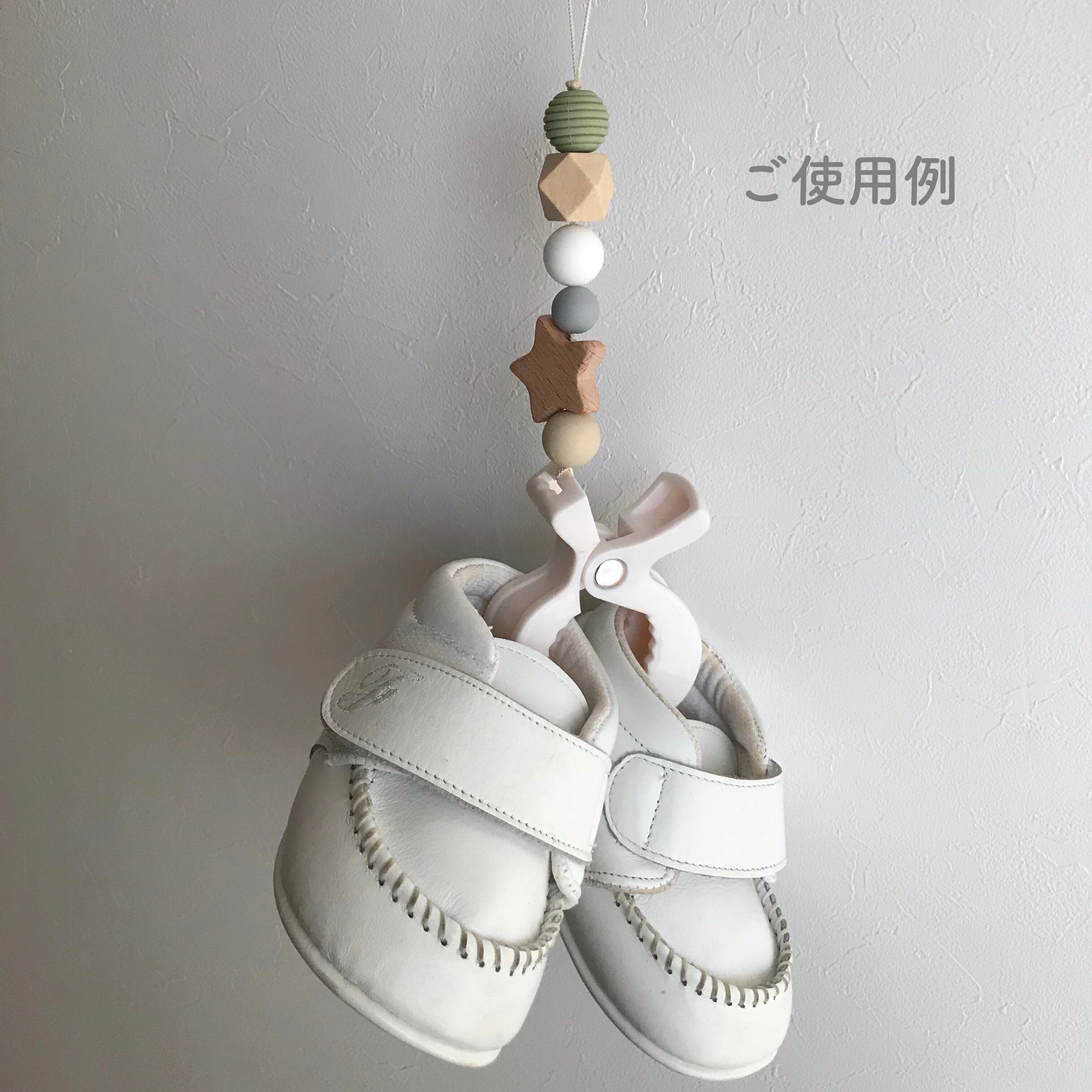 お子様のシューズやブランケットを挟み、ベビーカーなどに取り付けることができるシューズクリッパー。