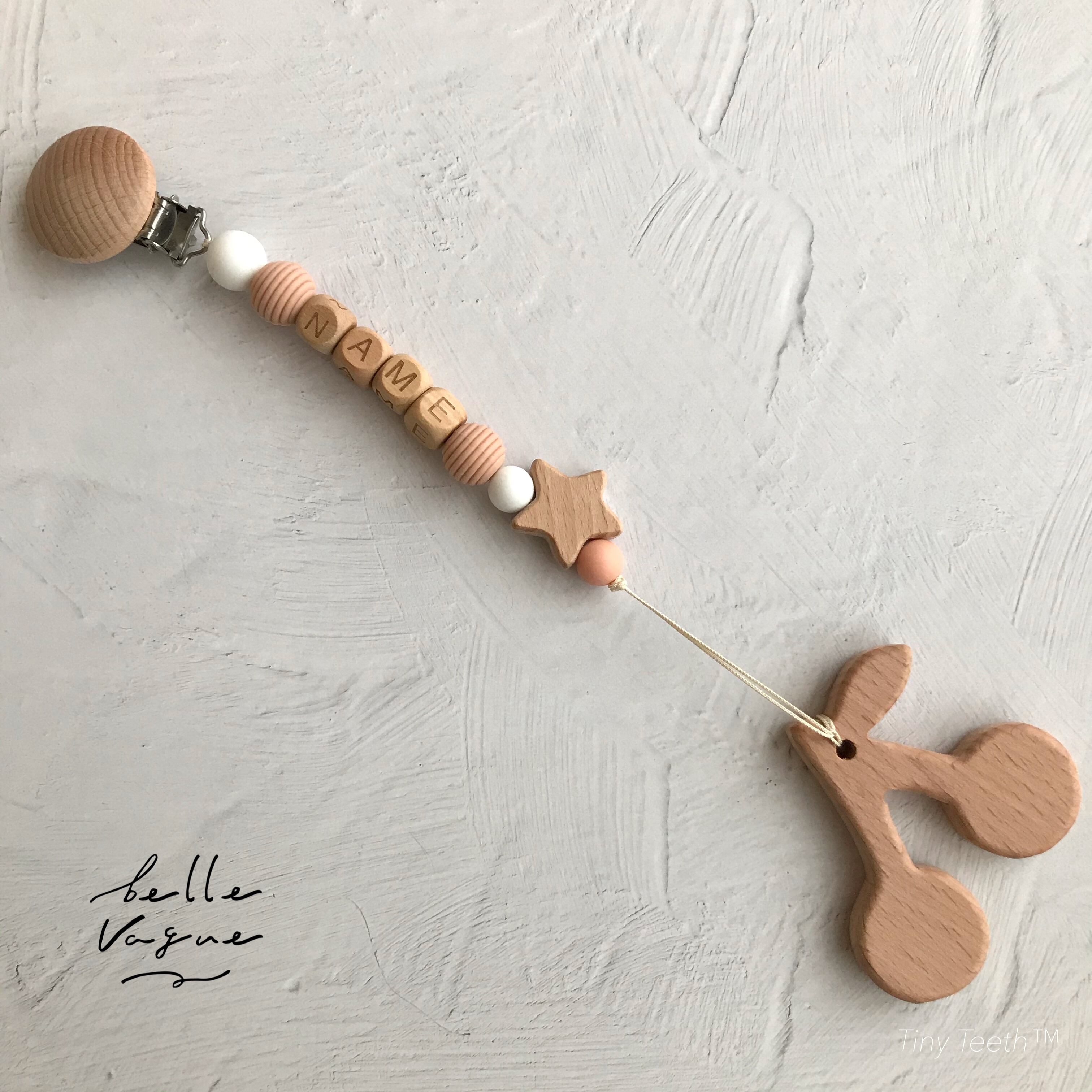 木の歯固めパーツを外してお手持ちのおしゃぶりをお付けいただくと、おしゃぶりホルダーとしてもご利用いただけます。