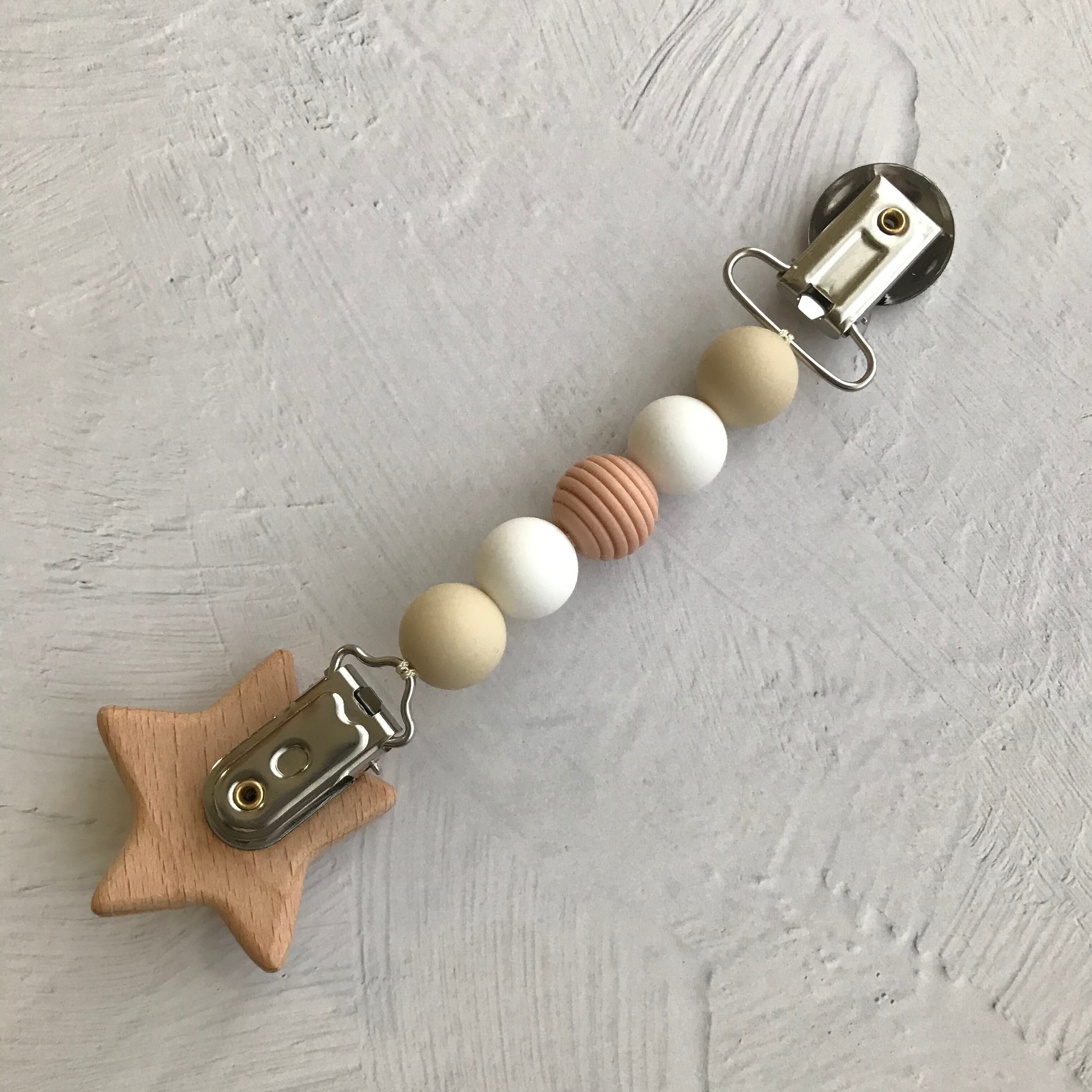 赤ちゃんが舐めても安全なBPAフリーFDA認可のシリコンビーズや天然木、万が一赤ちゃんの口に入っても大丈夫な接着剤を使用しております。
